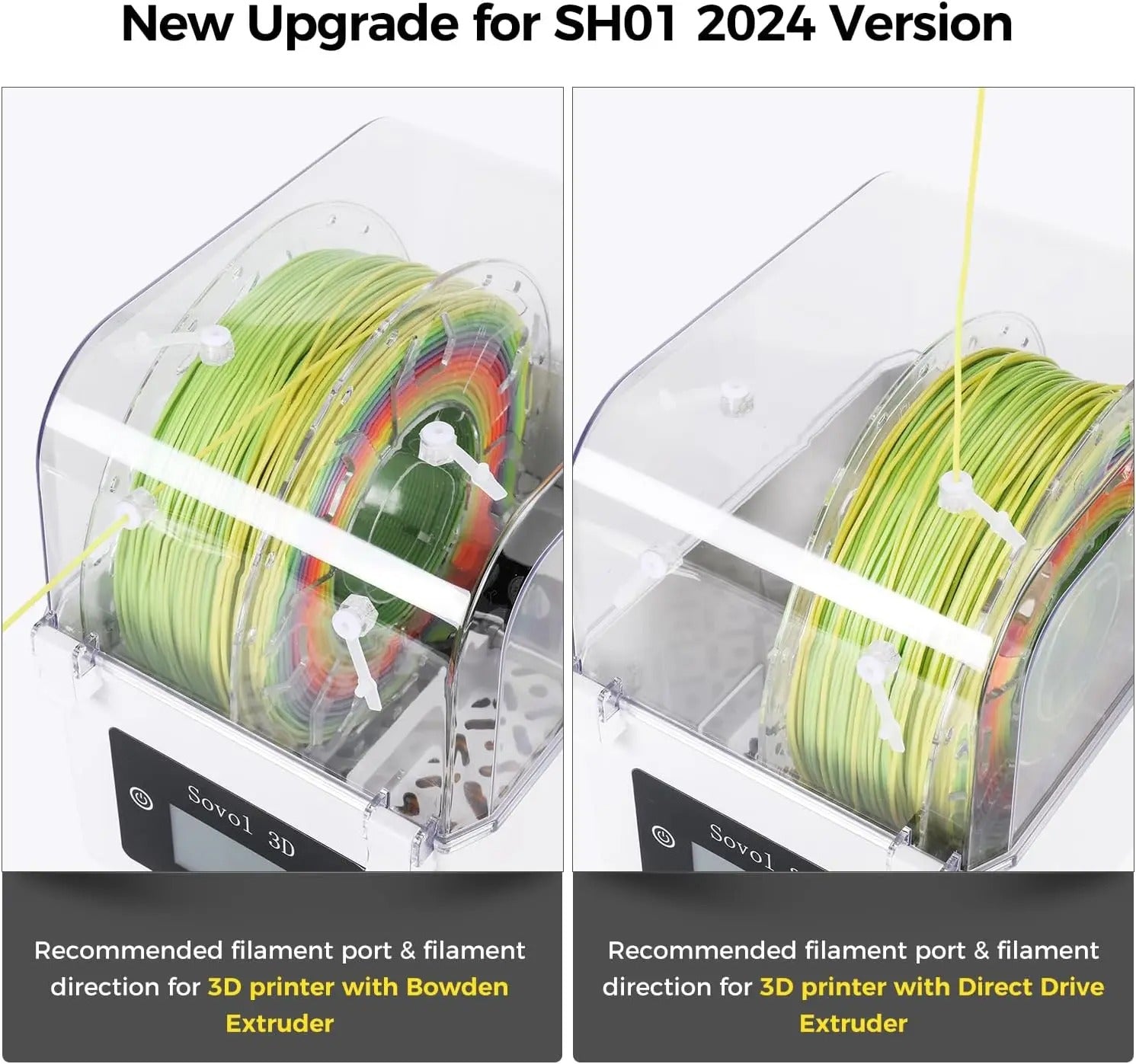 【Remove Excess Moisture】3D printer filaments are hygroscopic, moisture would cause printing failure. Sovol SH01, a great addition to 3d printer, can remove excess moisture, keep your filament dry and bring you better prints. The surface of prints will be smoother, the layer adhesion increased. No more brittle PLA, PETG, ABS filament